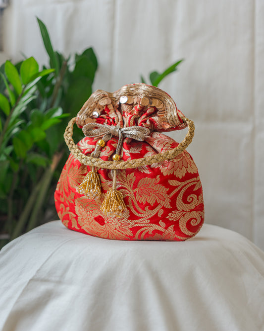 Red & Golden Banarasi Potli Bag