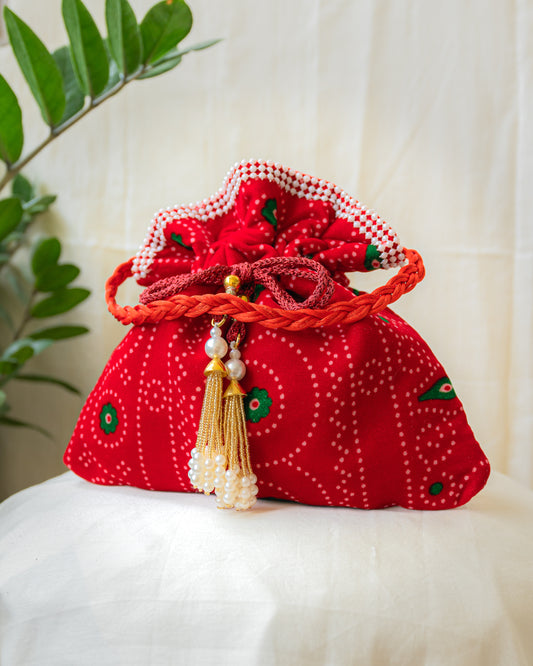 Red Bandhani Print Velvet Potli